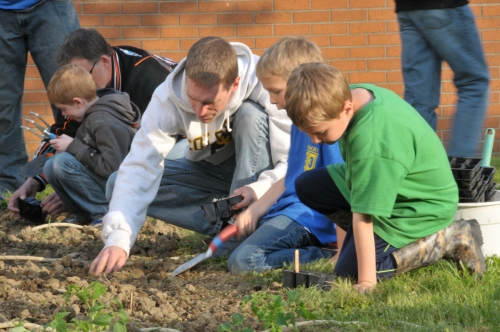 As part of their community service hours, this group (which is actually larger than it appears in these photos) started vegetable plants from seeds. The seedlings were placed in the earth last night by a handful of the cub scouts, their leaders & parents. They received a bit of education about how the seeds start, how they grow, what they need to flourish, and what we do with them as the vegetables appear and begin to ripen. After they were done, our Director of Activities & Volunteer Services presented each scout with the Pleasant Ridge Manor patch that they earned this year. We look forward to their visits again this year and most especially, we look forward to watching the garden grow and then to preparing amazing dishes with our residents!