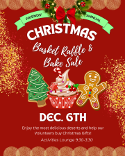 Also, our Volunteers have a great Lottery Tree Raffle starting on October 1st through the 31st. Tickets are available at our Reception desk and the tickets, worth $230 may result in a few big winners!!